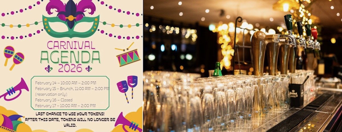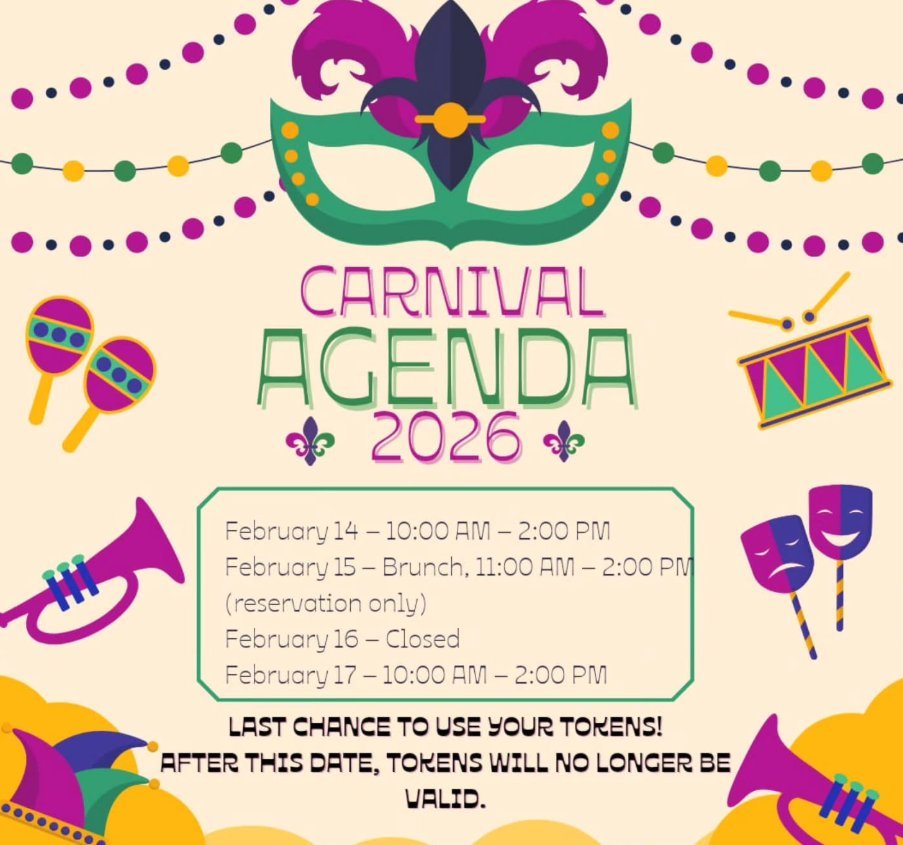 Carnaval 2026 staat voor de deur en dit jaar wordt het een beetje anders! Bekijk onze agenda en plan je feestje op tijd! Laatste kans om al je munten te gebruiken! Mis het niet – daarna zijn ze niet meer geldig en is er geen terugbetaling mogelijk, dus kom langs en haal eruit wat je kunt! Neem je vrienden mee, reserveer brunch op 15/02 en feest samen met ons! Tijdens carnaval is ons restaurant geopend voor lunch/diner volgens de gebruikelijke openingstijden. Laat de carnavalsenergie maximaal losbarsten!